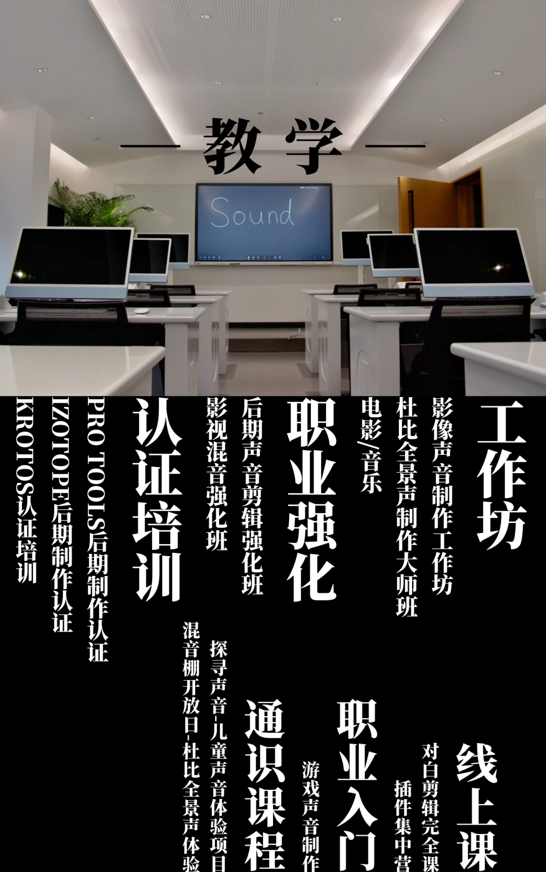 二层是我们各种项目开展的主要区域,这里有教室、混音棚、录音室。