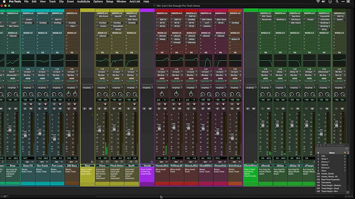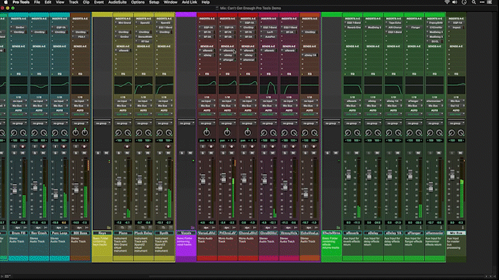 Protools有一个混音窗口,它在一个视图中显示你的会话,这个视图更像是一个混音控制台。