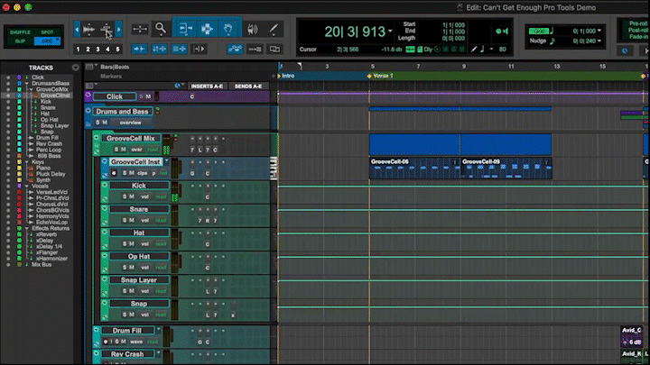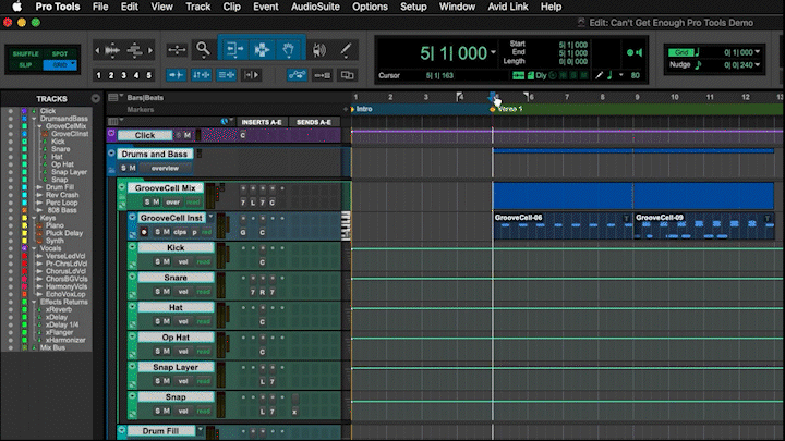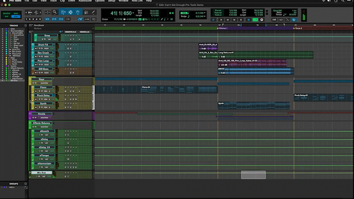 并且可以使用pro tools编辑工具来移动和编辑,使用默认激活的智能工具,你会看到这些工具是上下相关联的。功能会随着你的移动而改变,这是一种非常简单的工作方式 。