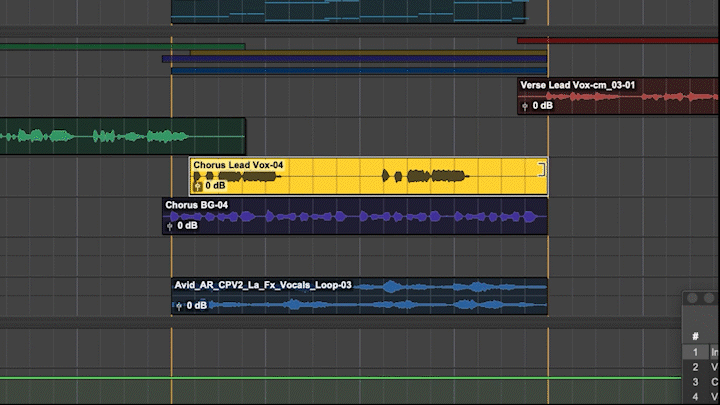 接下来是歌词和合唱的主唱以及一些背景人声,可以看到每个录制的部分都有自己的片段。