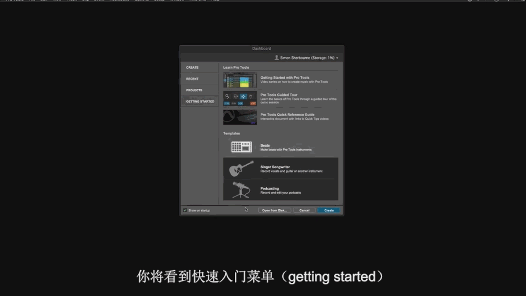当你打开 Pro Tools 时,你将看到快速入门(getting started)界面,其中包含可跳转至其他教程及模板工程的链接。