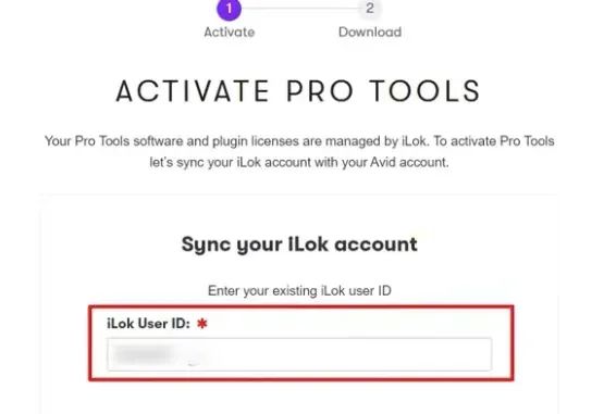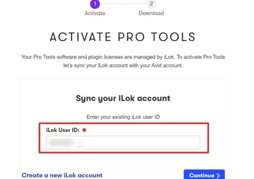 此时你会被要求输入你的iLok账户信息,如果你已经有了一个与Avid账户相关联的iLok账户,你的用户id会出现在红框中。
