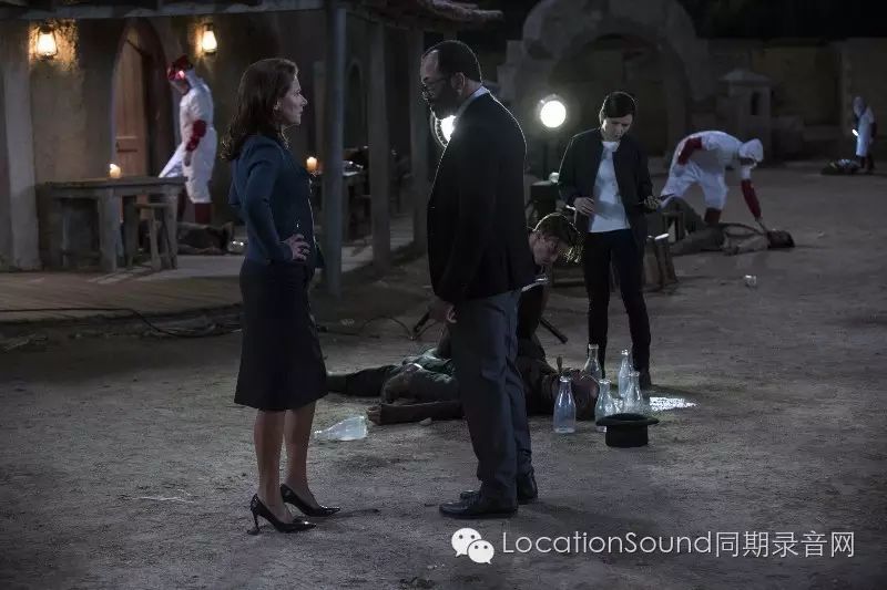 Thomas:基本上是每周按进度提交相应内容。这是一个持续性的过程,在这个过程中我们得以不断地改进。每一集我们都是单独声音编辑制作,但是我们需要特别关注整部剧中重复出现的场景,避免出现同一场景前后不同步的状况。在西部世界中,机器人接待员是按主机设定的程序运行,每天不断重复既定的场景预设活动。这些投放在西部世界游乐园中的机器人接待员在某种程度上模仿着人类的生活,像人类一样活动,但这些行为动作却都是日复一日不断重复的内容。然而,根据游客与主机间的交互,这些机器人日常例行的行为动作将会发生些许变化。因此,我们必须保持整个系列剧前后的一致性,回复到之前的情节,仔细比对这些行为动作以作参考。