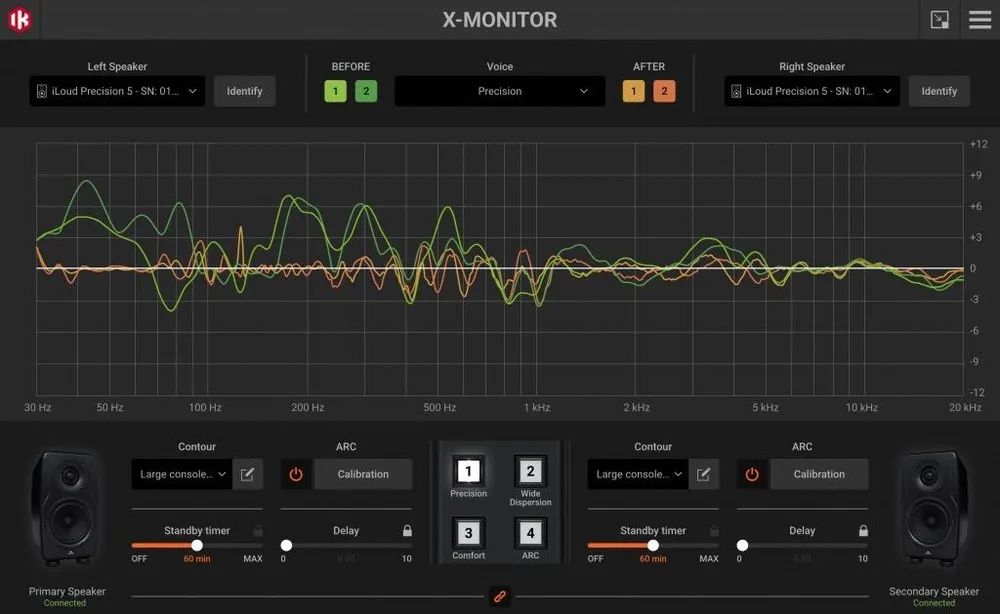 除了全新的硬件外,Precision系列还引入了X-MONITOR程序,这是一个独特而先进的控制应用程序,同时适用于Mac和Windows系统,可协助用户进行校准过程。将该软件通过USB连接到Precision系列单元,并提供对每个扬声器的后部面板控件的便捷远程访问方式。
