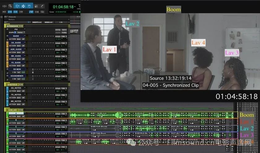 对白编辑的目的调整好对白品质与清晰度,在吊杆麦克风和领夹麦克风之间选择最佳的对白选项,确保每个时刻的对白都使用了最合适的麦克风。